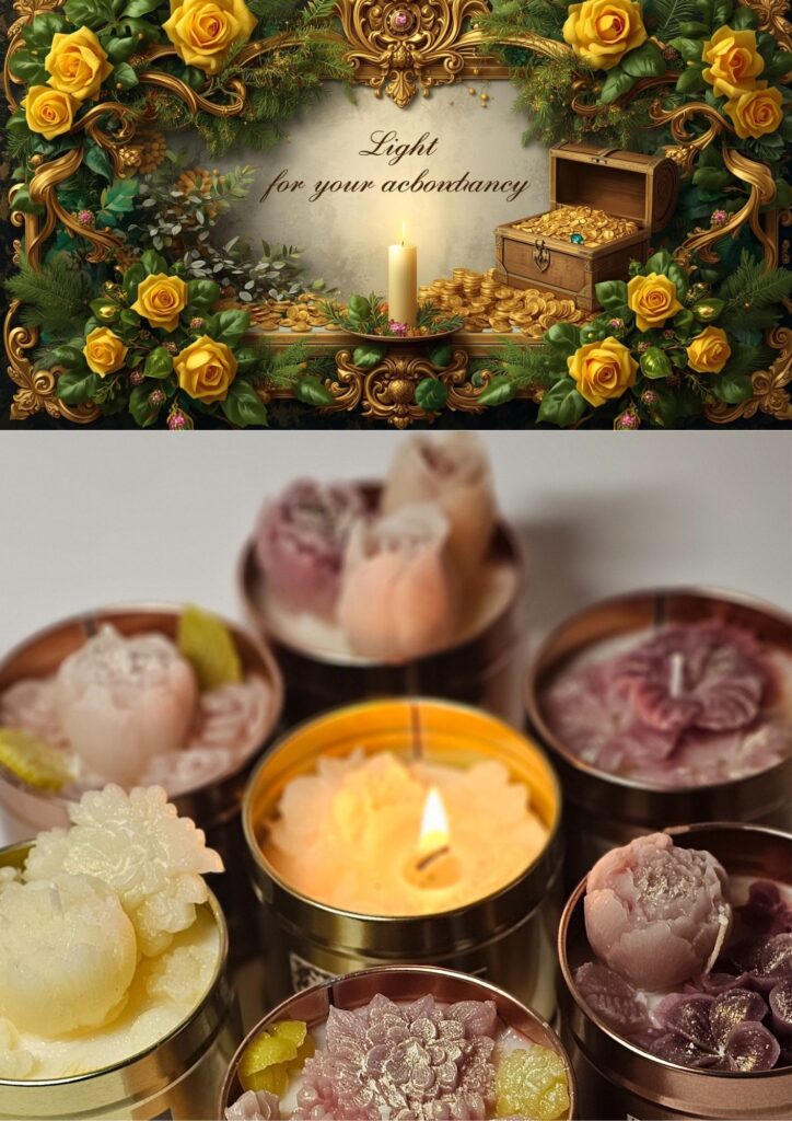 Tato svíčka je tvořena jako světelný klíč k hojnosti. Její plamen nese záměr otevřít tok hojnosti, vidění života očima dostatku nikoli nedostatku, vděčnosti za to co je i co bude. V každém zažehnutí se probouzí energie příležitostí, možností, růstu a hodnoty – vlastní i té, kterou získáváme ve vnějším světě.